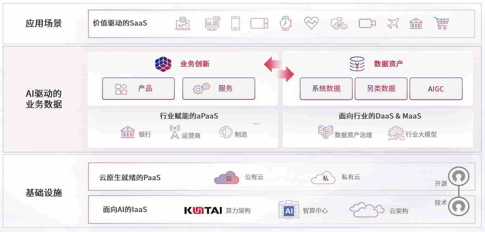 数字时代,,,,围绕企业数字化转型的关键要素,,z6com尊龙数码开创性的提出数云融合战略和技术体系框架,,着力在云原生、、、数字原生、、AI原生和信创产业上架构产品和服务能力,,,,为处在不同数字化转型阶段的快消零售、、、、汽车、、、金融、、、、医疗、、、政企、、教育、、运营商等行业客户提供泛在的敏捷IT能力和融合的数据驱动能力,,,,构建跨界融合创新的数字业务场景和新业务模式,,,,助力企业级客户建立面向未来的核心能力和竞争优势,,,,全面推动社会的数字化、、、智能化转型升级。。